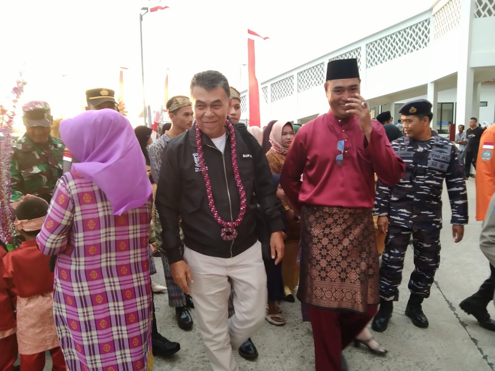 Acara penyambutan berlangsung meriah, dimulai dengan prosesi adat setempat yang penuh kehangatan dan kebersamaan. Para tokoh masyarakat, pemuda, serta berbagai elemen warga berkumpul di pelabuhan untuk menyambut Bupati Wan Siswandi beserta rombongan.