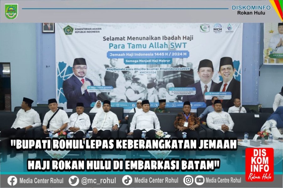 Pelepasan keberangkatan bagi 470 JCH Rohul Kloter 8 ini dilakukan di Embarkasi Haji Batam, turut disaksikan Kabag T.U Kanwil Kemenag Kepri Abu Sofian, Kemenag Rohul H.Zulkifli Syarif, S.Ag, Kepala Bank Riau Kepri Rohul, Asisten II Drs.H.Ibnu Ulya,M.Si, Kadis Kominfo Rohul H.Sofwan,S.Sos, Kaban Bappeda Drs.H.Yusmar,M.Si, Kadis KB dr.Bambang, Kadis Koperasi Zulhendri, Kasat Pol PP Gorneng, Kadis Hub Minarli, staff Ahli Neng Murialti, Kabag Kesra Um Zakirman, Kasi Haji Martilevi Saleh, Serta Kabid IKP Diskominfo Rudy Fadrial, S.Sos,M.Si.