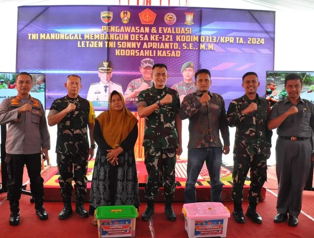 Kampar Kiri , ( jejakberitanews ) – Dalam rangka memastikan pelaksanaan program Tentara Manunggal Membangun Desa (TMMD) berjalan sesuai rencana dan memberikan dampak positif bagi masyarakat, Koorsahli Kasad Letjen TNI Sony Aprianto. S,E., M.M. melakukan peninjauan langsung ke lokasi TMMD ke 121 Kodim 0313/KPR T.A 2024 di Desa Tanjung Belit Selatan, Kec. Kampar Kiri, Kabupaten Kampar, Provinsi Riau. Kamis(8/8/2024)