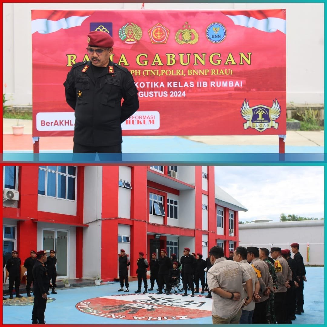 Rumbai , ( jejakberitanews ) Dalam rangka deteksi dini cegah adanya gangguan Kemananan dan Ketertiban (Kamtib), Lembaga Pemasyarakatan Narkotika Kelas IIB Rumbai dengan dipimpin langsung oleh Kepala Lapas Narkotika Rumbai, Henri Alfa Edison Damanik beserta Jajaran menggelar Razia gabungan bersama TNI, Polri dan Badan Narkotika Nasional Provinsi Riau. Rabu (28/08/2024).