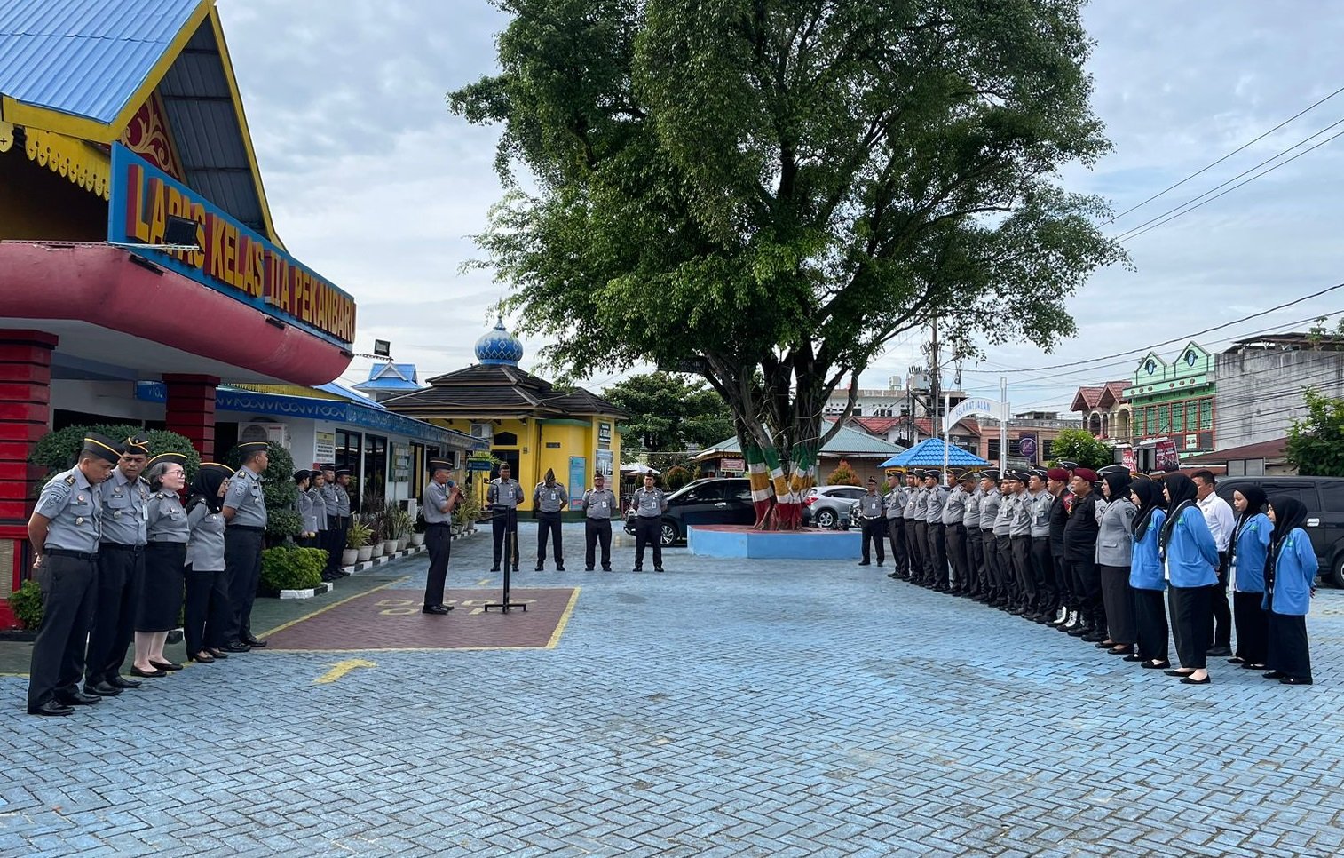 Pekanbaru, |JejakBeritaNews — Apel pagi menjadi momentum penting bagi jajaran Lembaga Pemasyarakatan (Lapas) Kelas IIA Pekanbaru. Untuk itu, Lapas Kelas IIA Pekanbaru melaksanakan apel pagi rutin yang merupakan media bagi pimpinan untuk memberikan instruksi, apresiasi, motivasi hingga evaluasi tugas dan fungsi sebagai Petugas Pemasyarakatan dan wejangan diluar tugas dan fungsi sebagai Aparatur Sipil Negara (ASN).