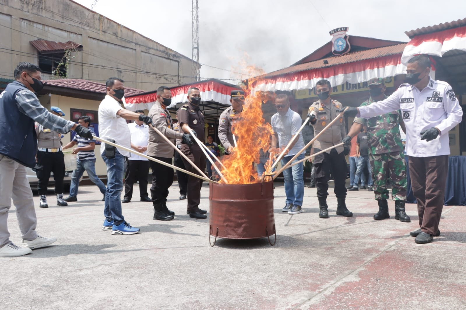 Usai gelar press release, Kapolres Siak bersama unsur terkait yang hadir memusnahkan sebagian barang bukti Narkotika daun ganja dengan cara dibakar