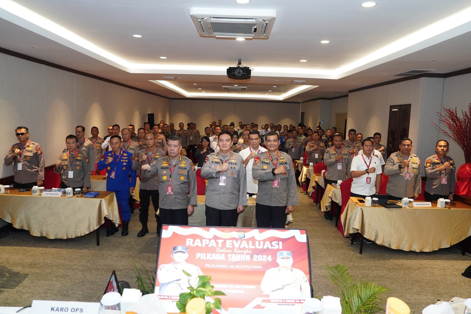 PELALAWAN, ( jejakberitanews ) — Kapolda Riau Irjen Pol Muhammad Iqbal membuka dan memimpin rapat evaluasi dalam rangka Pemilihan Kepala Daerah (Pilkada) serentak tahun 2024 bertempat di Hotel Unigraha PT. RAPP Kab. Pelalawan, Kamis (22/8/2024).
