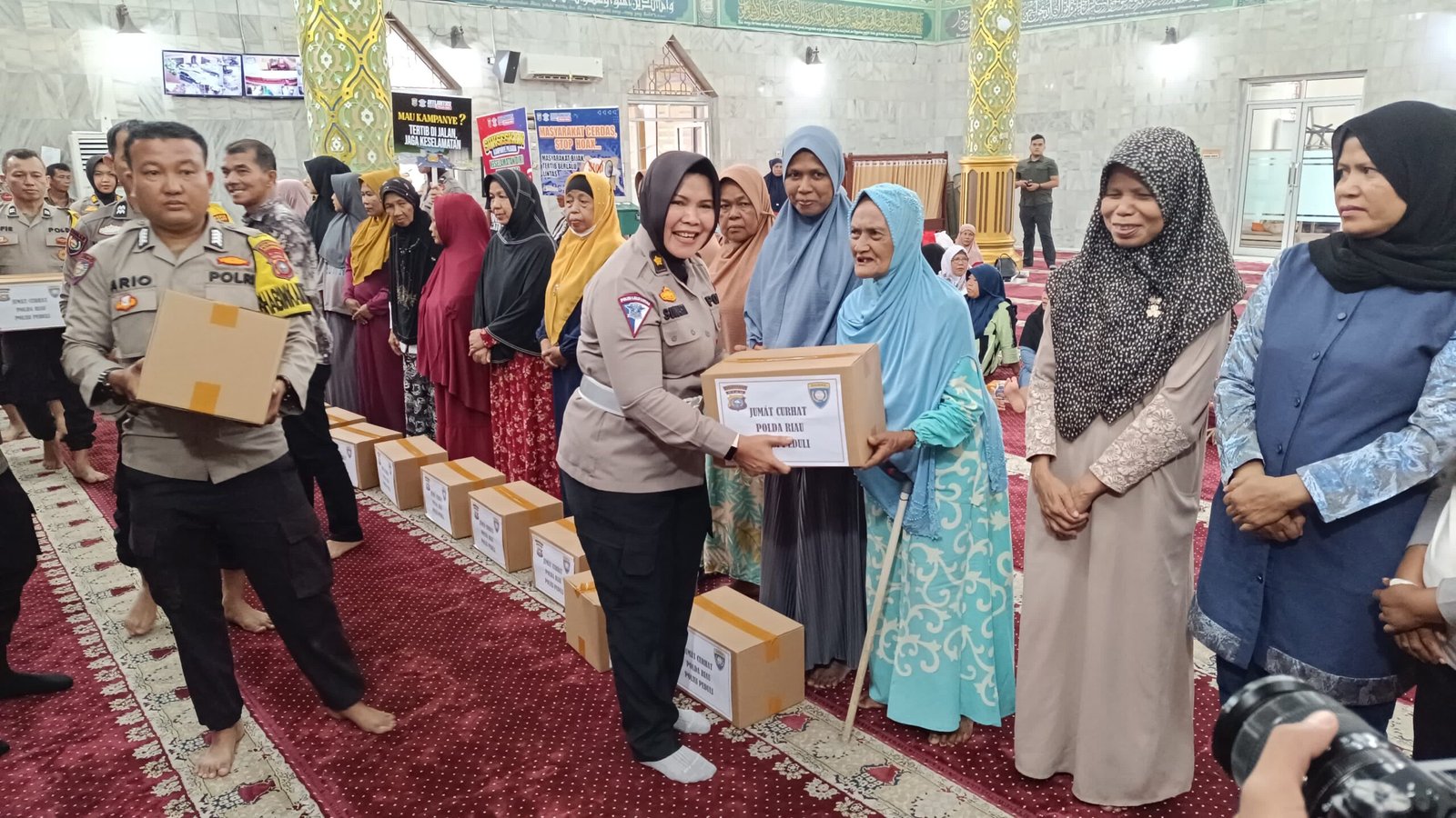 Dalam kegiatan tersebut, TIM Jum’at Curhat Polda Riau memberikan kesempatan tanya jawab kepada masyarakat yang hadir, usai dari kegiatan aktivitas tanya Jawab, Kasi Dikmas Ditlantas Polda Riau Kompol Sunarti, S.H dan PJU Polda Riau yang hadir juga membagikan Helm SNI kepada masyarakat yang mendapatkan kesempatan untuk bertanya jawab.