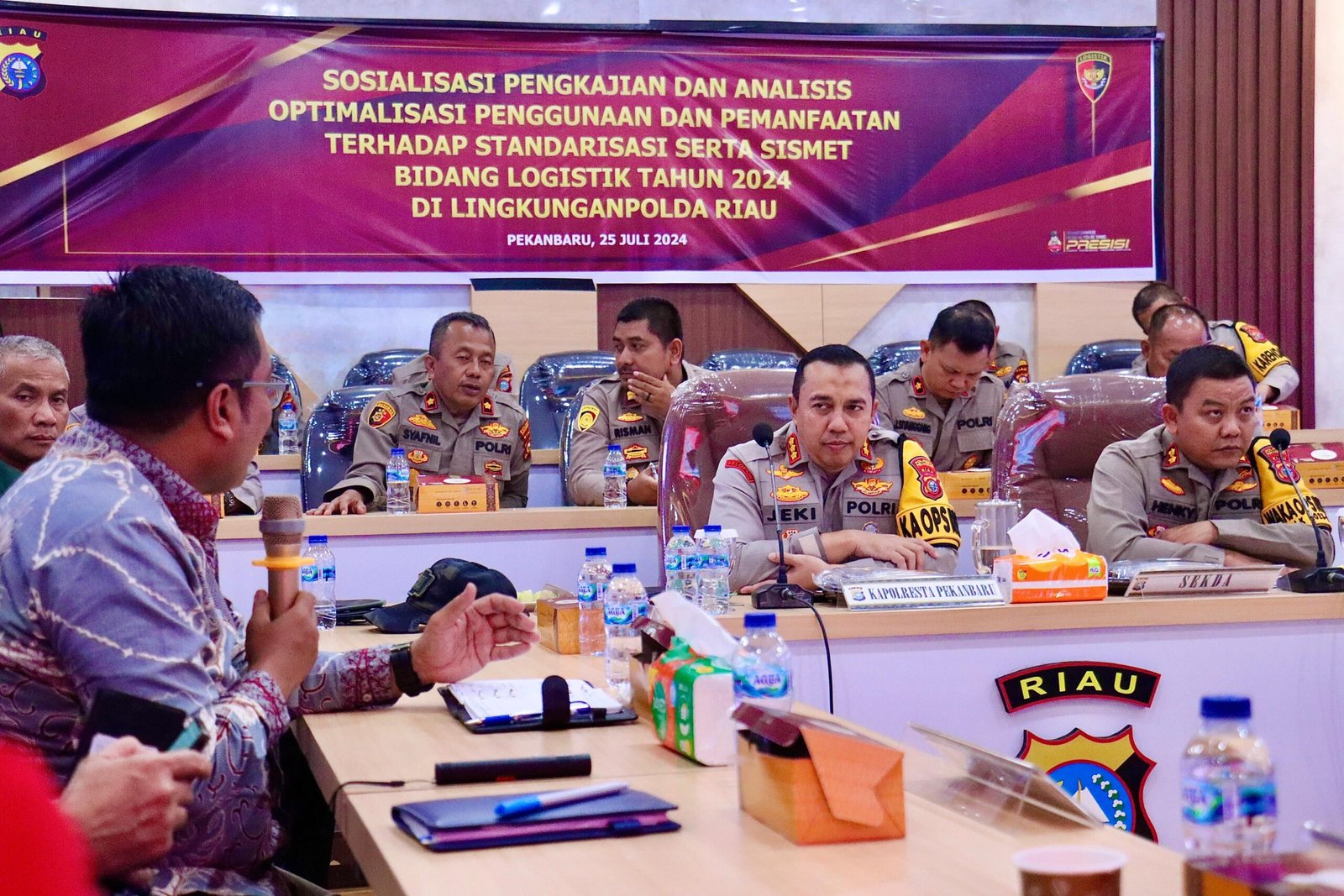 Para peserta rapat, termasuk Kabagops Polresta Pekanbaru, Kompol Novaldi, S.Sos., M.Si., turut menyampaikan data terbaru terkait kasus karhutla di tahun lalu dan upaya penegakan hukum yang dilakukan.