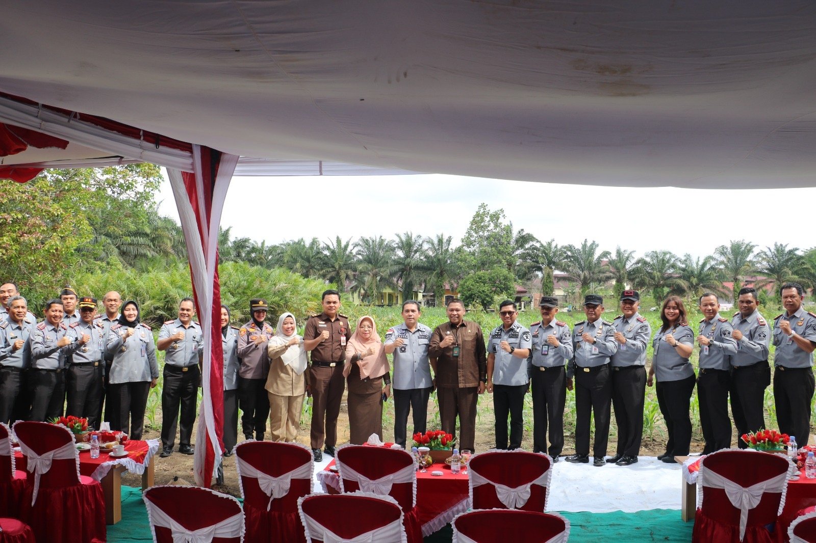 Bangkinang – |JejakBeritaNews — Lapas Kelas IIA Bangkinang menjadi pilot project ketahanan pangan di lingkungan Kementerian Hukum dan HAM Riau. Hal ini ditandai dengan penanaman 100 bibit pohon durian musang king di area Lapas, Jumat (19/11/2024). Kegiatan ini dihadiri oleh Kepala Kantor Wilayah Kemenkumham Riau, Budi Argap Situngkir, didampingi oleh Kepala Divisi Pemasyarakatan Ricky Dwi Biantoro, serta Pj. Bupati Kampar yang diwakili oleh Sekda, Ramlah. Turut hadir juga Kepala UPT Pemasyarakatan di lingkungan Kanwil Kemenkumham Riau beserta jajaran Bimbingan Kerja.