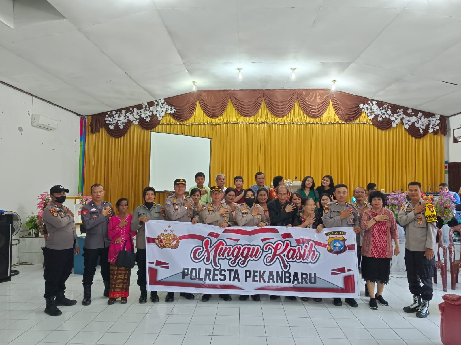 Kegiatan ini dihadiri oleh perwakilan dari Polresta Pekanbaru, diwakili oleh Kasikiu Polresta Pekanbaru, AKP Arlen, bersama Kapolsek Senapelan AKP Akira Ceria, SIK, MM, serta sejumlah pejabat lainnya seperti Kanit Binmas Polsek Senapelan AKP Arifin Butar Butar, Kanit Bimkamsa Polresta Pekanbaru Iptu Apolas Sugiana, Ps. Kasi TIK Polresta Pekanbaru Iptu Erni, dan Kanit Provos Polsek Senapelan Ipda Anton Basir, serta anggota Polsek Senapelan dan sekitar 30 jemaat gereja.