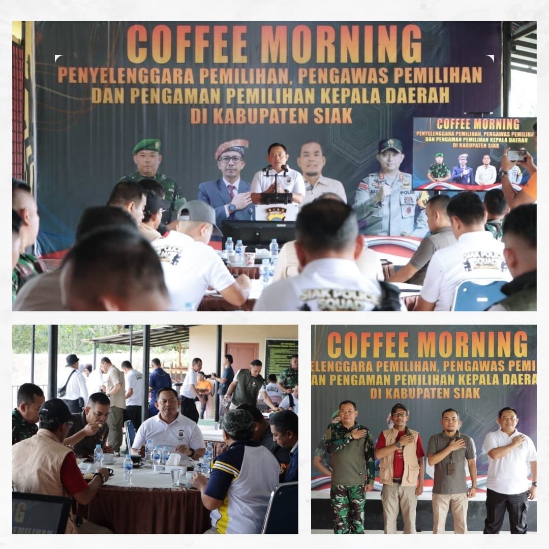Kapolres Siak menyampaikan undangan Coffee Morning sekaligus diskusi sebagai upaya meningkatkan cooling system menjelang pelaksanaan Pilkada tahun 2024,dengan tujuan menjaga situasi keamanan dan ketertiban masyarakat (kamtibmas) yang kondusif.