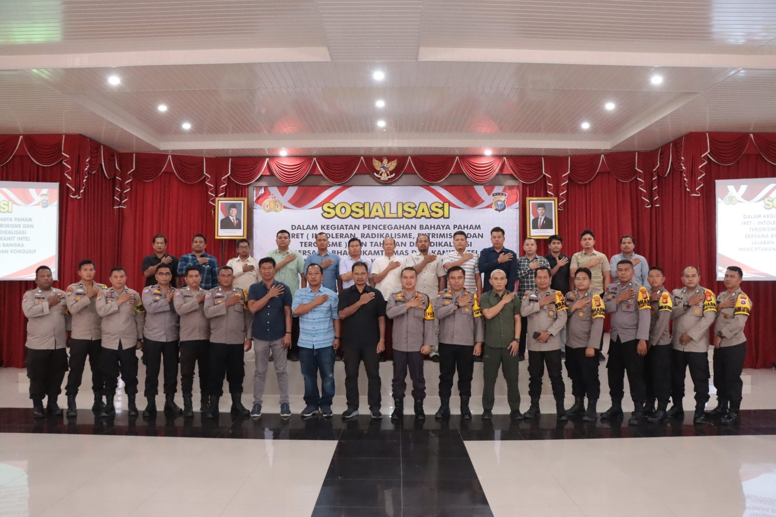 |JejakBeritaNews — Kapolres Kampar AKBP Ronald Sumaja (tengah) berfoto bersama peserta sosialisasi dari Densus 88, Kamis (24/10/2024).