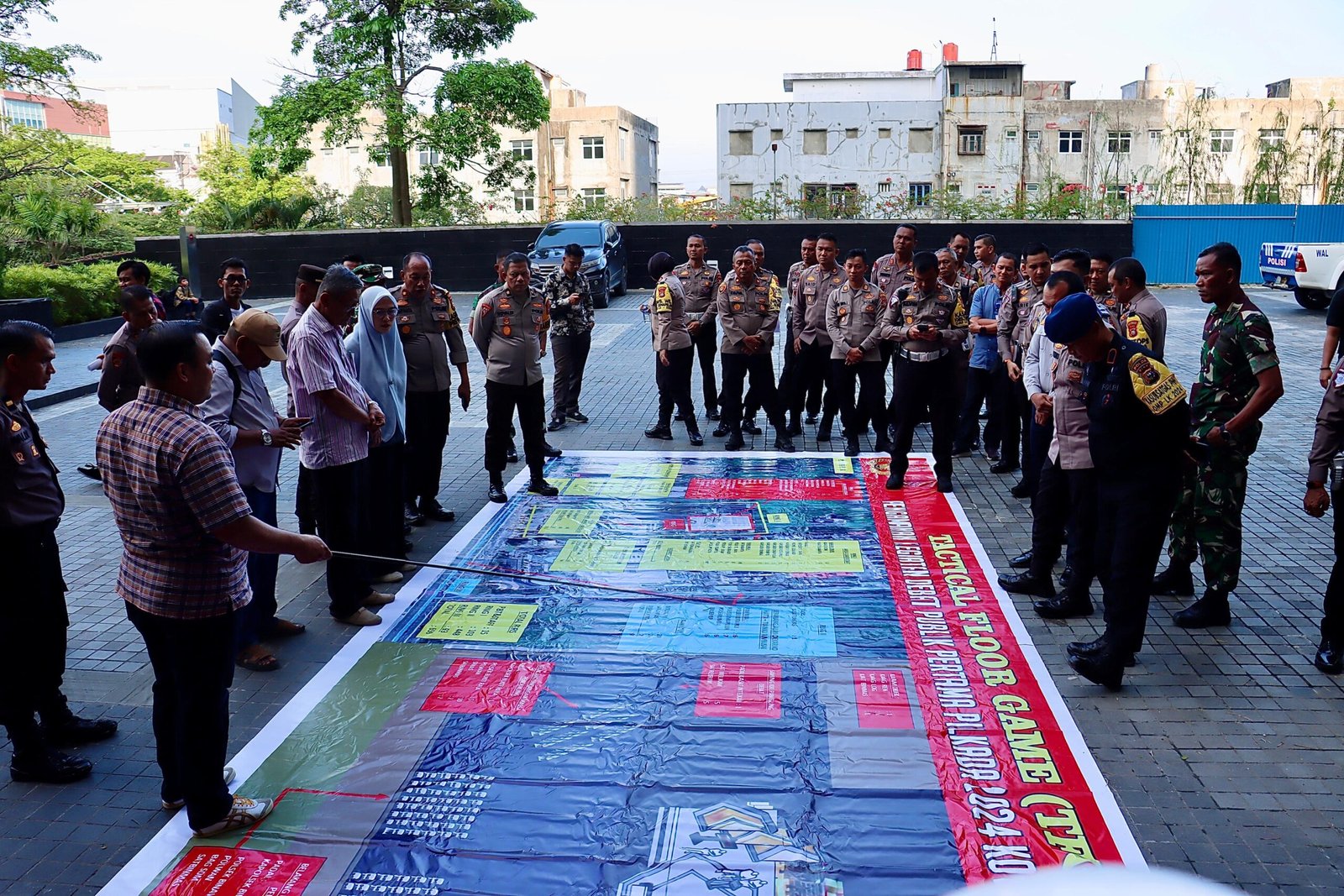 Kapolresta Pekanbaru menyampaikan bahwa dalam rapat tersebut dilaksanakan Tactical Floor Game (TFG), yaitu simulasi skenario tindakan untuk memastikan kesiapan dan tata cara bertindak dalam pengamanan. Melalui TFG, masing-masing satuan tugas dapat mempersiapkan diri sesuai dengan skenario yang telah direncanakan.