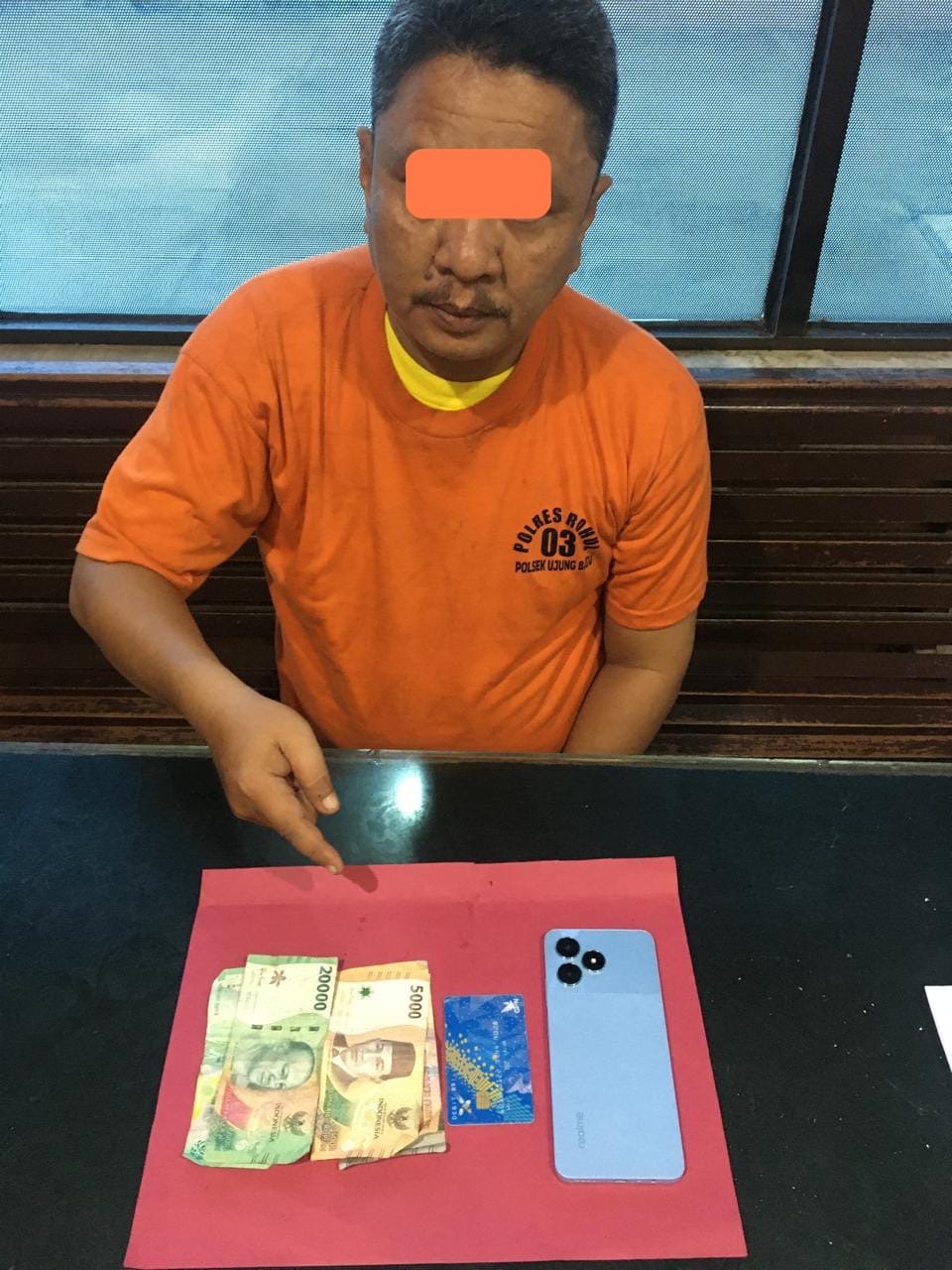 Selain mengamankan Pelaku DM, polisi menyita barang bukti yang diamankan adalah satu unit HP merk Realme Not 50 warna biru,dan uang tunai sebesar Rp. 52.000,- (Lima puluh dua ribu rupiah) serta satu buah ATM BRI warna biru dengan No. Seri ATM 6013 ×××× ×××× ××××. Dan No. Rek 336××××××××××××