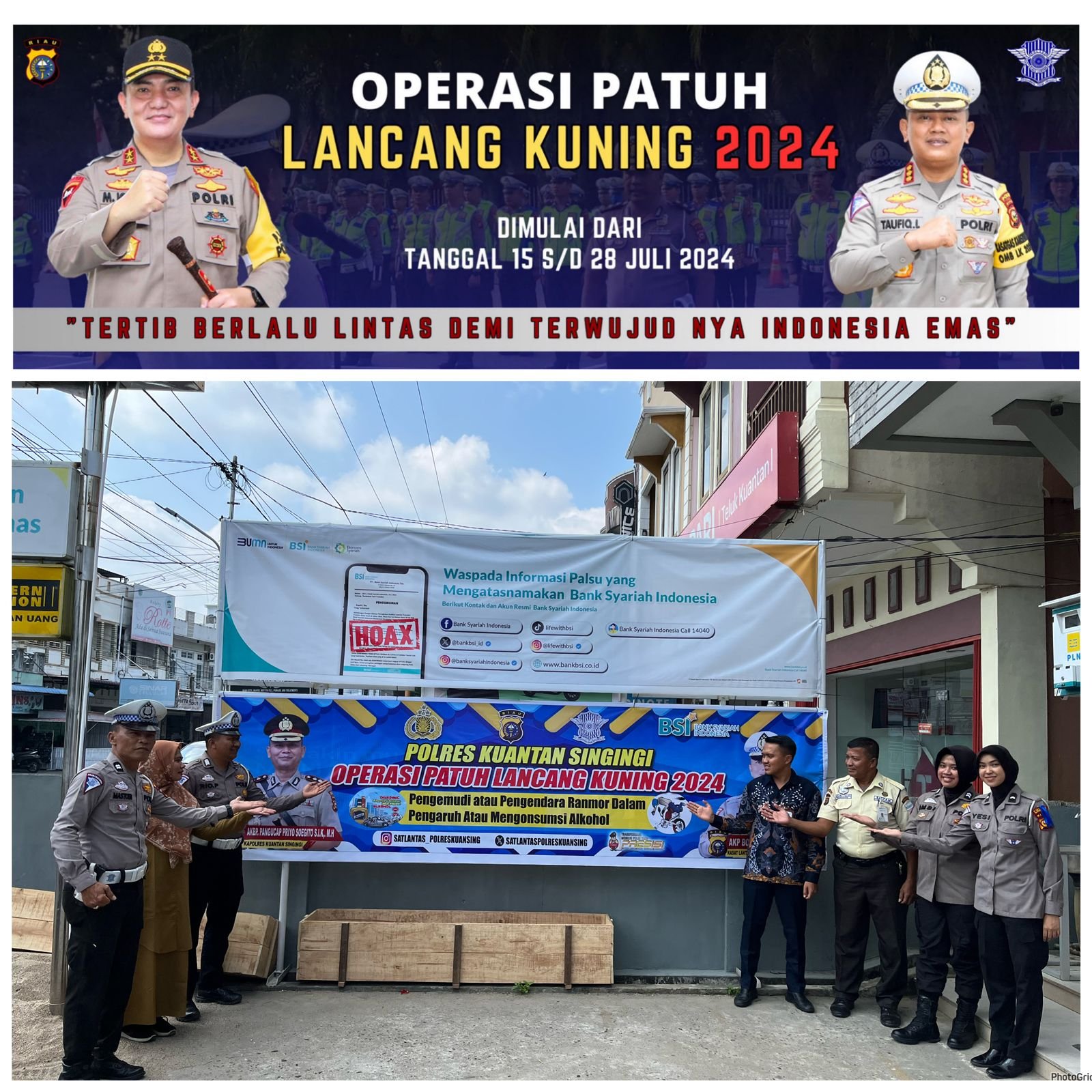 Kapolres Kuansing, AKBP Pangucap Priyo Soegito, S.I.K, M.H., melalui Kasat Lantas AKP Boy Setiawan S.AP., M.SI, mengatakan, “Satgas Preemtif Polres Kuansing melaksanakan pemasangan spanduk himbauan di berbagai lokasi strategis di wilayah hukum Polres Kuansing. Spanduk-spanduk tersebut dipasang sebagai bagian dari Operasi Patuh Lancang Kuning Tahun 2024,” ujar Kasat Lantas.