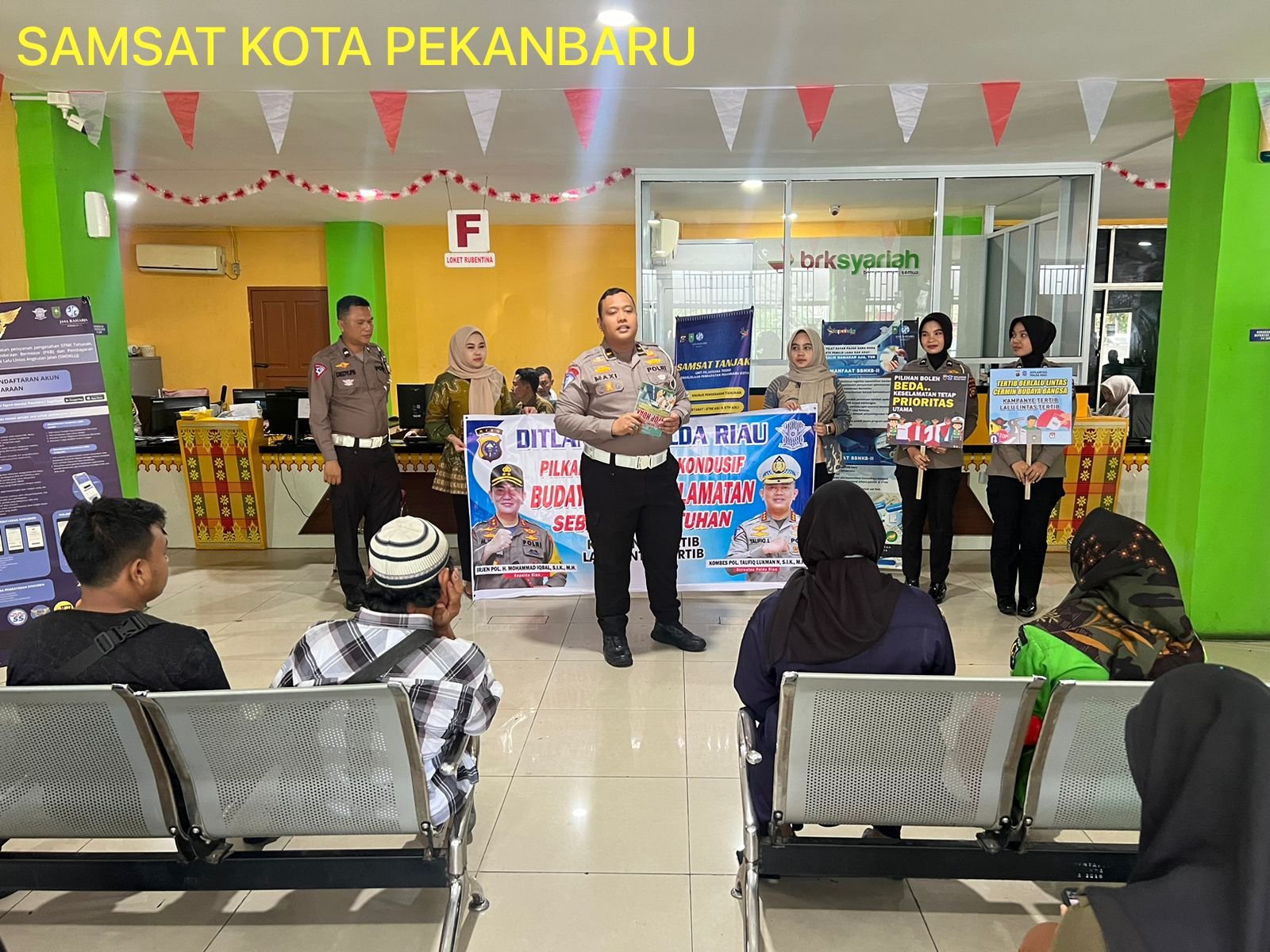 Pekanbaru, ( jejakberitanews ) — Direktorat Lalu Lintas ( Ditlantas ) Polda Riau terus menggelorakan himbauan keselamatan dalam berlalu lintas dan Kamtibmas kepada wajib pajak, kegiatan tersebut berlangsung di kantor pelayanan Samsat Kota Pekanbaru yang berada di Jl. Gajah Mada Kota Pekanbaru.