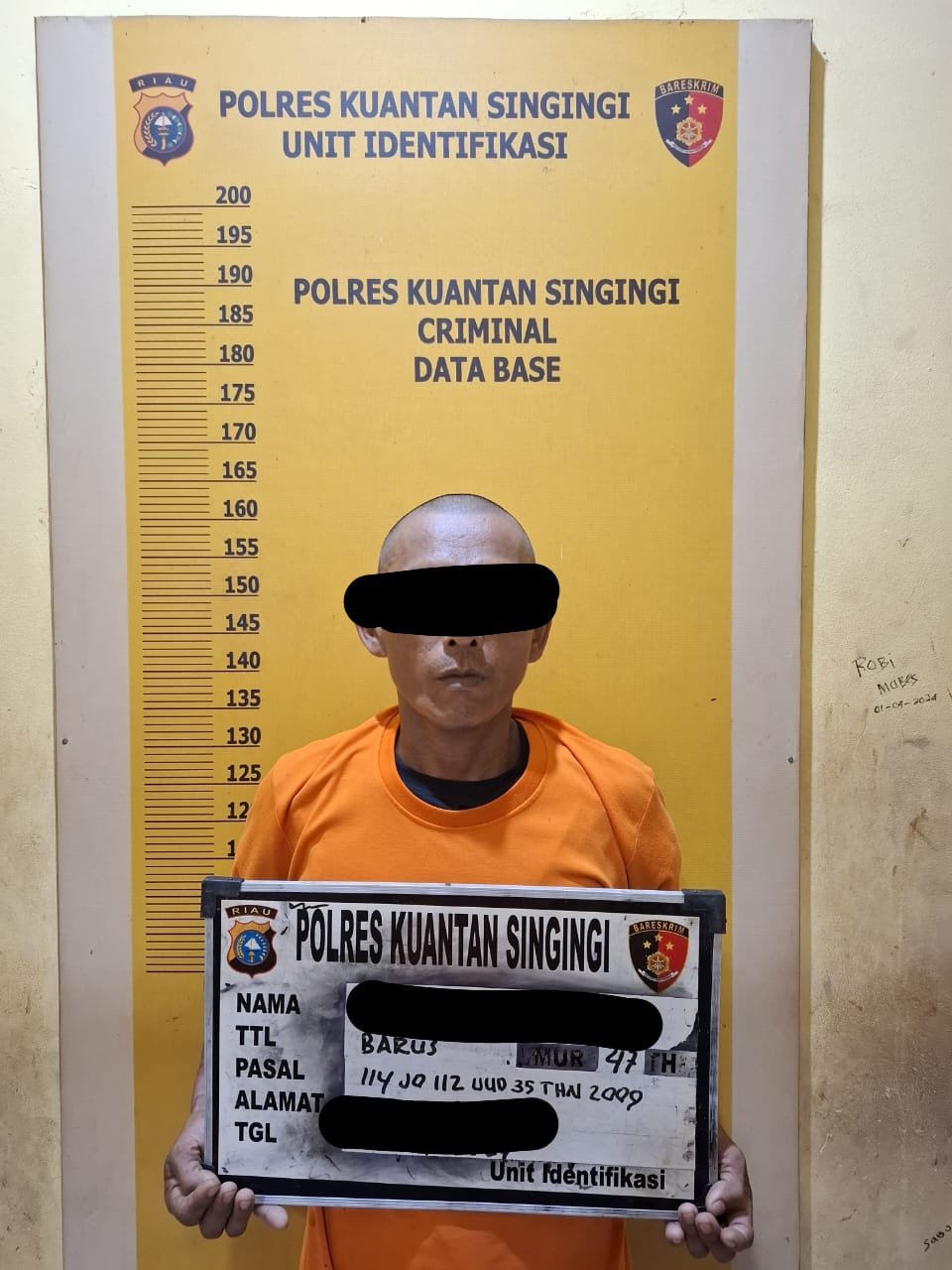 Kapolres Kuansing, AKBP Pangucap Priyo Soegito, S.I.K, M.H., melalui Kasat Res Narkoba Polres Kuantan Singingi, AKP Novris H Simanjuntak, SH, MH, mengatakan “Kronologis Penangkapan pada hari Senin, 22 Juli 2024, sekitar pukul 15.00 WIB, tim Mata Elang yang dipimpin oleh Kasat Res Narkoba Polres Kuantan Singingi, AKP Novris H Simanjuntak, S.H., M.H., melakukan penyelidikan di sekitar Desa Bukit Raya. Setelah melakukan penyelidikan intensif, pada pukul 18.00 WIB, tim berhasil menangkap seorang tersangka berinisial JS (47) yang sedang berjalan di desa tersebut,” ujar Kasat.