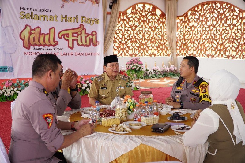 ROKAN HULU, JEJAKBERITANEWS.com – Jajaran Polres Rokan Hulu (Rohul) silaturahmi dengan Bupati H Sukiman dalam kegiatan Open House Raya Idul Fitri 1 Syawal 1445 H, di Rumah Dinas (Rumdis) Bupati, di Desa Pematang Berangan, Kecamatan Rambah, Selasa 16 April 2024 sekitar pukul 11.50 Wib.
