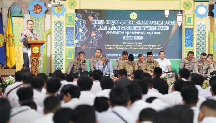 Polda Riau, || jejakberitanews.Com ||– Kapolda Riau, Irjen Pol. Herry Heryawan, SIK, MH, M.Hum. menjadi keynote speaker dalam kegiatan *Baitul Arqam & Pembekalan Purna Studi Bagi Calon Wisuda XXVIII* Universitas Muhammadiyah Riau (UMRI) dengan tema “Mewujudkan Generasi Inovatif, Inspiratif, Berdaya Saing, dan Mencerahkan Semesta”, yang berlangsung di Auditorium Lantai 3 Gedung Rektorat UMRI, Jalan Tuanku Tambusai, Pekanbaru. Sabtu pagi (19/4/2025).