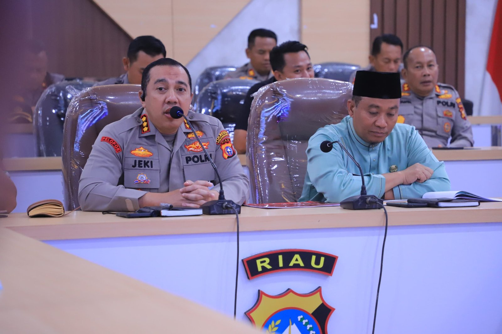 Hadir dalam rapat tersebut unsur Forkopimda Kota Pekanbaru, perwakilan TNI, serta berbagai instansi terkait, termasuk Dinas Kesehatan, Dinas Perhubungan, Satpol PP, BPBD, Basarnas, BMKG, PLN, dan Pertamina.