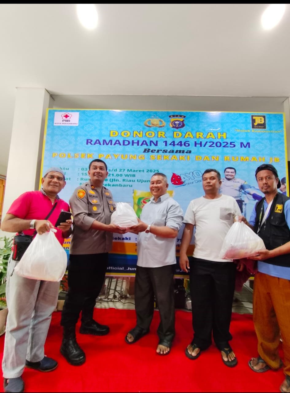 JejakBeritaNews.com ,Pekanbaru,| Riau – Dalam semangat berbagi di bulan Ramadan 1446 H/2025 M, Polsek Payung Sekaki berkolaborasi dengan Rumah Jumat Berkah (JB) Bina Sosial Pekanbaru dan Palang Merah Indonesia (PMI) Pekanbaru mengadakan kegiatan donor darah.