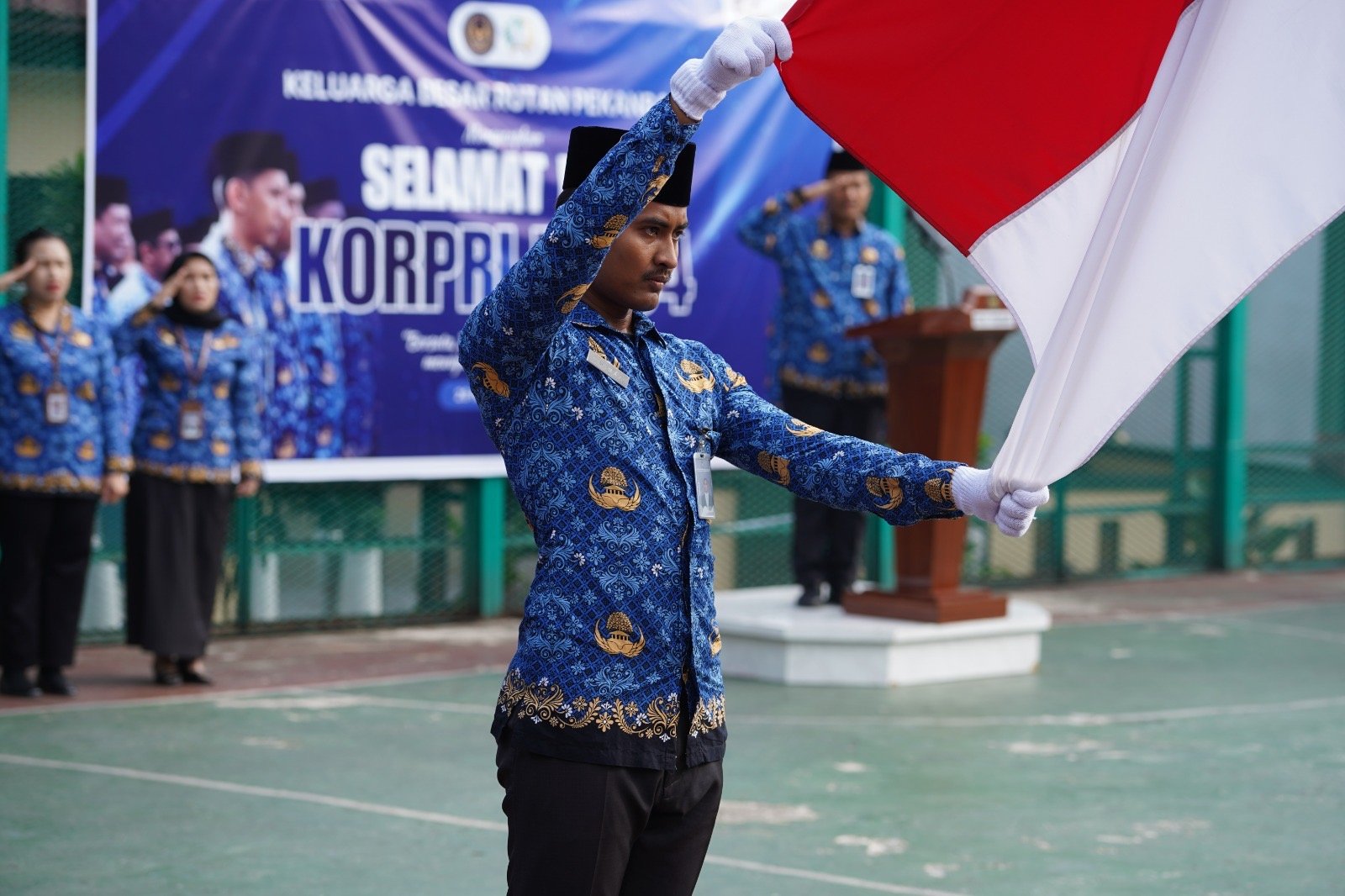 Kepala Rutan Pekanbaru, yang pada kesempatan tersebut diwakili Kepala Seksi Pengelolaan, Budi Hamidi, bertindak sebagai Inspektur Upacara. Ia membacakan amanat Ketua Umum Dewan Pengurus KORPRI Nasional yang menekankan pentingnya memperkokoh persatuan dan meningkatkan profesionalisme aparatur dalam menjalankan tugas pengabdian.