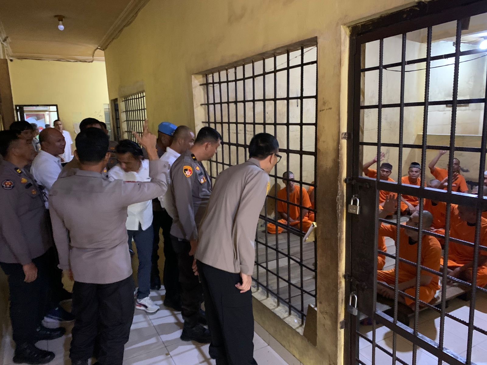 KUANTANSINGINGI,– |JejakBeritaNews Kapolres Kuantan Singingi, AKBP Angga F. Herlambang, S.I.K., S.H., melakukan pengecekan langsung ke ruang tahanan Polres Kuansing pada Minggu (19/1/2025) pukul 11.45 WIB. Kegiatan ini bertujuan untuk memastikan kondisi para tahanan dalam keadaan sehat dan aman, serta memantau langsung situasi keamanan di ruang tahanan. Kegiatan ini turut dihadiri oleh sejumlah pejabat utama (PJU) Polres Kuansing, yaitu Wakapolres Kuansing, KOMPOL Novaldi, S.Sos., M.Si., Para Kabag Polres Kuansing, Para Kasat Polres Kuansing dan Para Kapolsek jajaran Polres Kuansing.