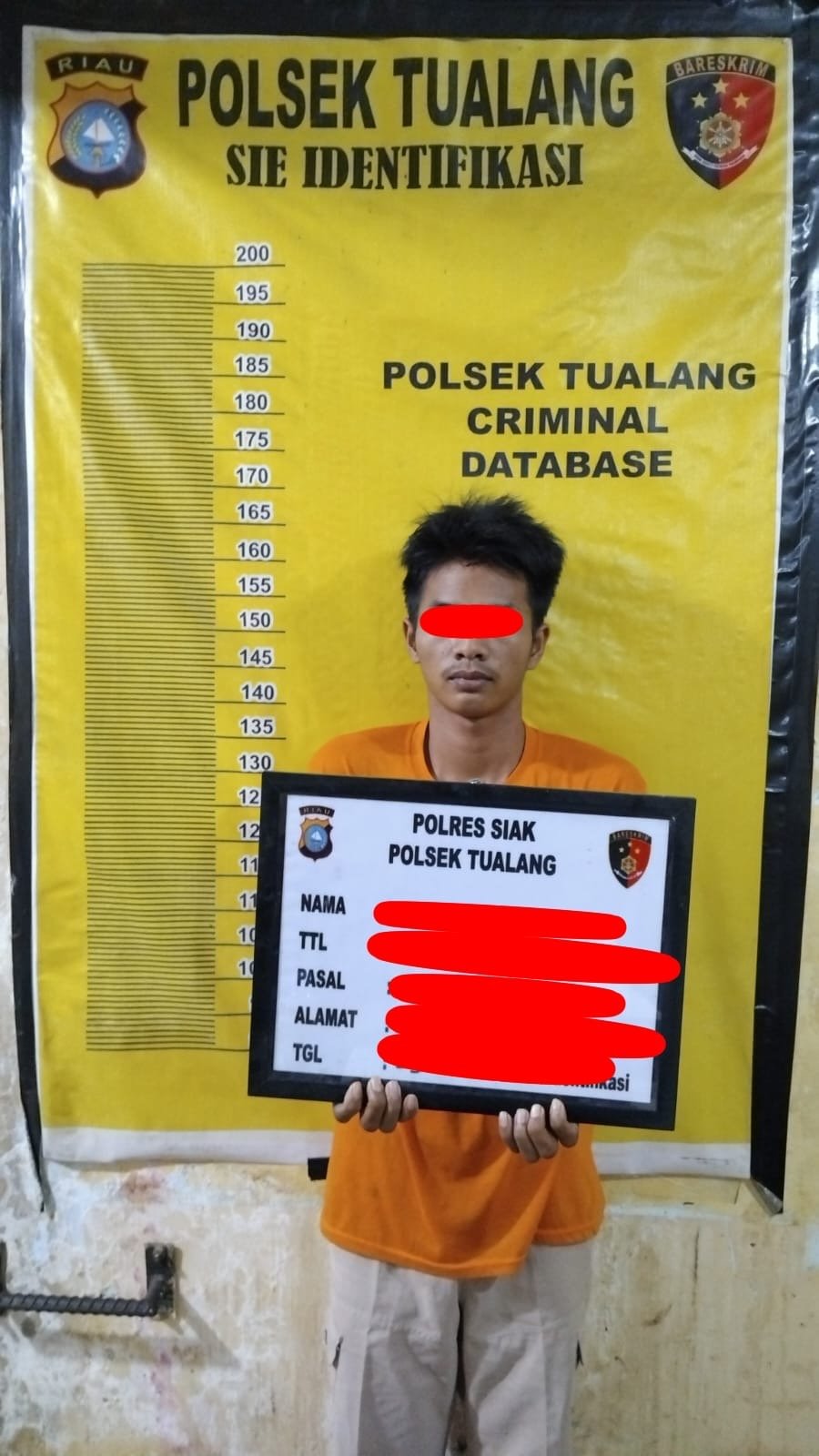 Kapolsek Tualang Kompol Hendrix.SH.MH, menerangkan kronologi penangkapan dimulai ketika anggota opsnal Polsek Tualang yang dipimpin Kanit Reskrim Iptu Alan Arief S. Kom menerima informasi mengenai keberadaan pelaku C3 ( Curas, Curanmor Dan Curat ) berada di Taman Motuyoko, Tim opsnal langsung menuju lokasi tersebut dan berhasil mengamankan tersangka berinisial YH.