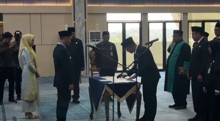 Agung memimpin langsung prosesi pengambilan sumpah jabatan dan pelantikan. Agung turut didampingi Penjabat (Pj) Sekretaris Daerah Ingot Ahmad Hutasuhut dan sejumlah kepala OPD lainnya.