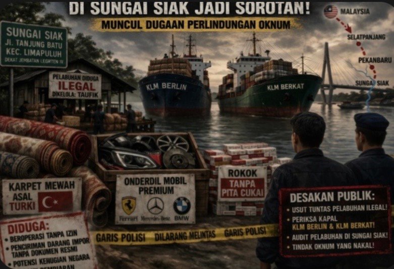 Pekanbaru – (jejakberitanews.com) Dugaan praktik ilegal di tepian Sungai Siak, tepatnya di kawasan Jalan Tanjung Batu, kian menjadi sorotan. Sebuah pelabuhan yang diduga beroperasi tanpa izin resmi disebut-sebut menjadi titik masuk barang impor ilegal bernilai tinggi ke wilayah Riau.